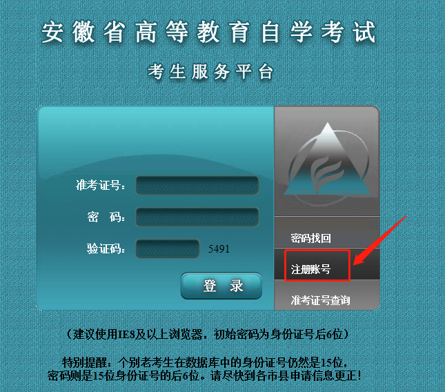 3、记录准考证号,并输入准考证号和密码登录(初始密码为身份证后6位)