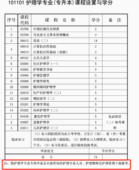 有限制性报考条件的专业,比如重庆自考本科护理学专业,只有护理学专业专科毕业且目前在岗的护理专业人员、护理教师及护理管理干部才能报考(如下图所示)。