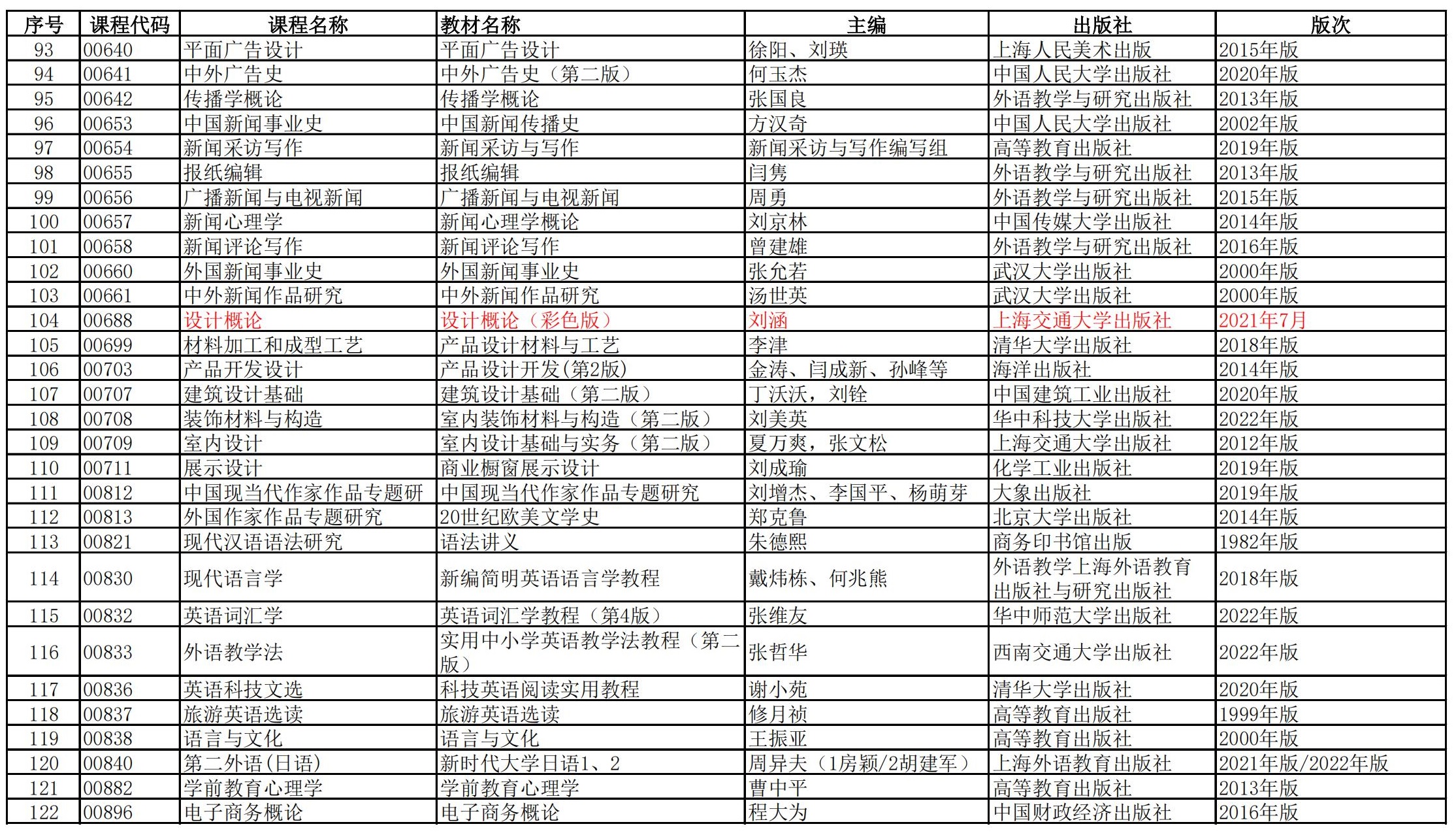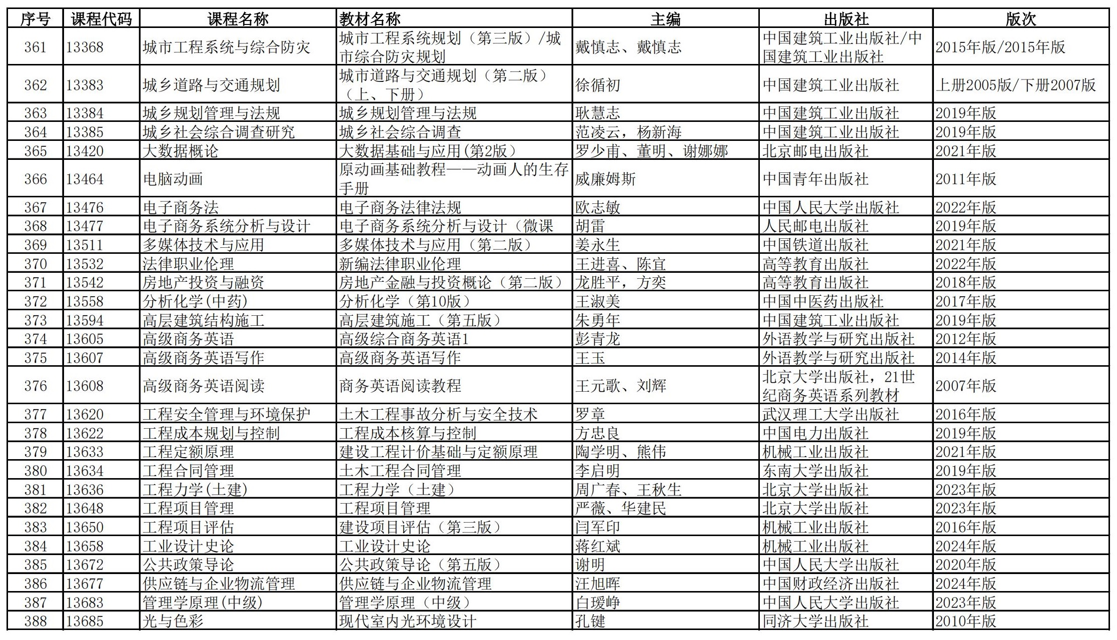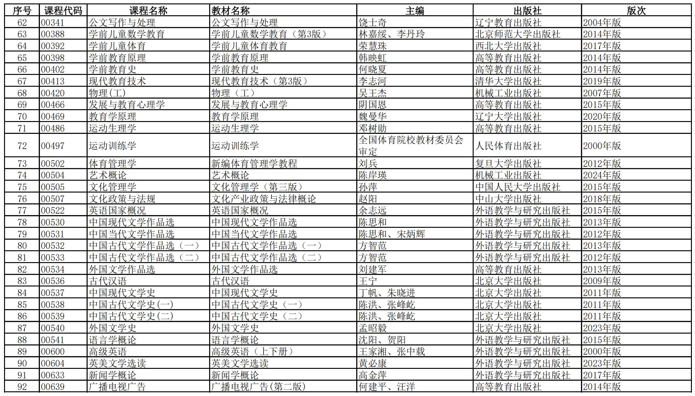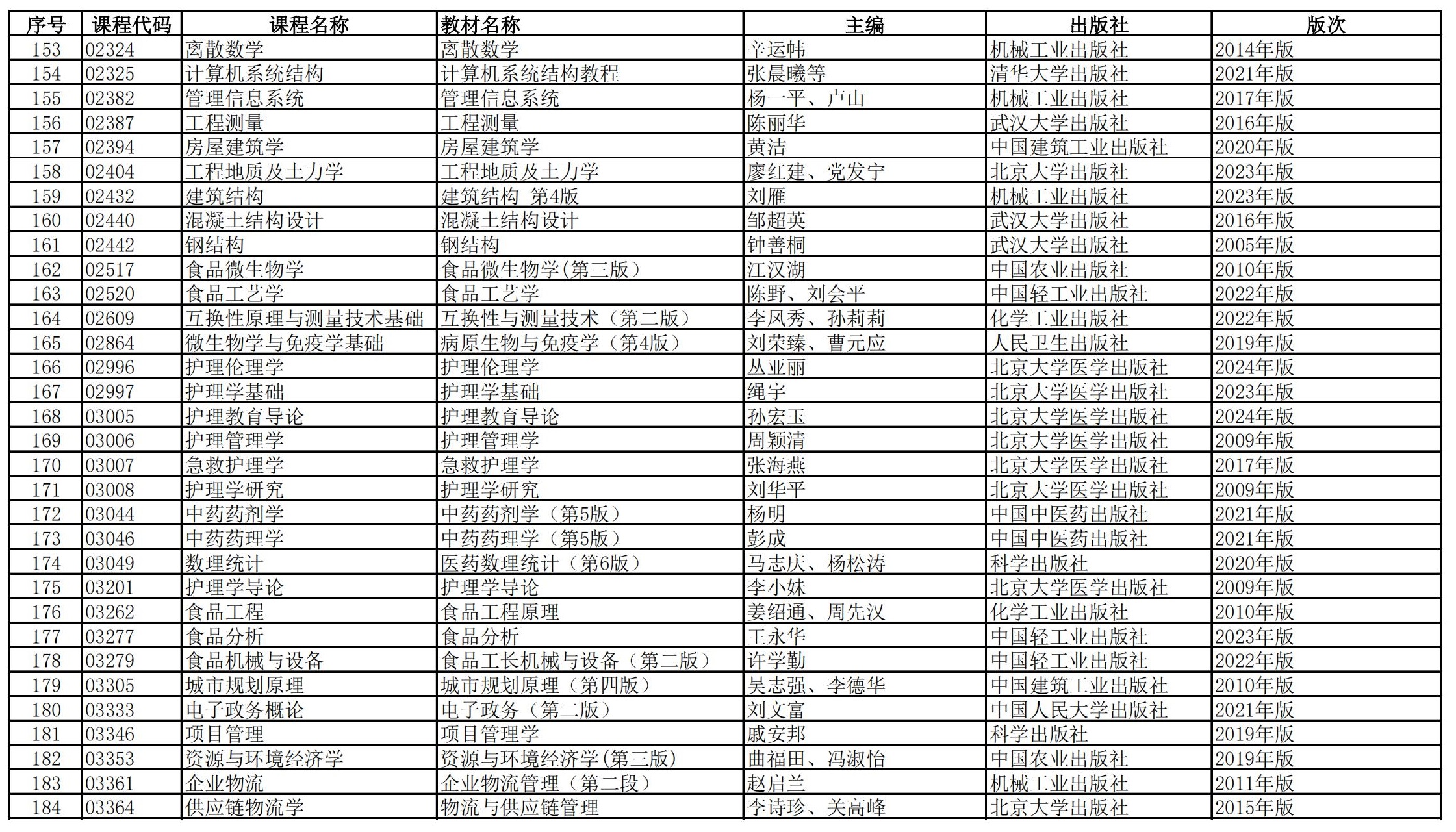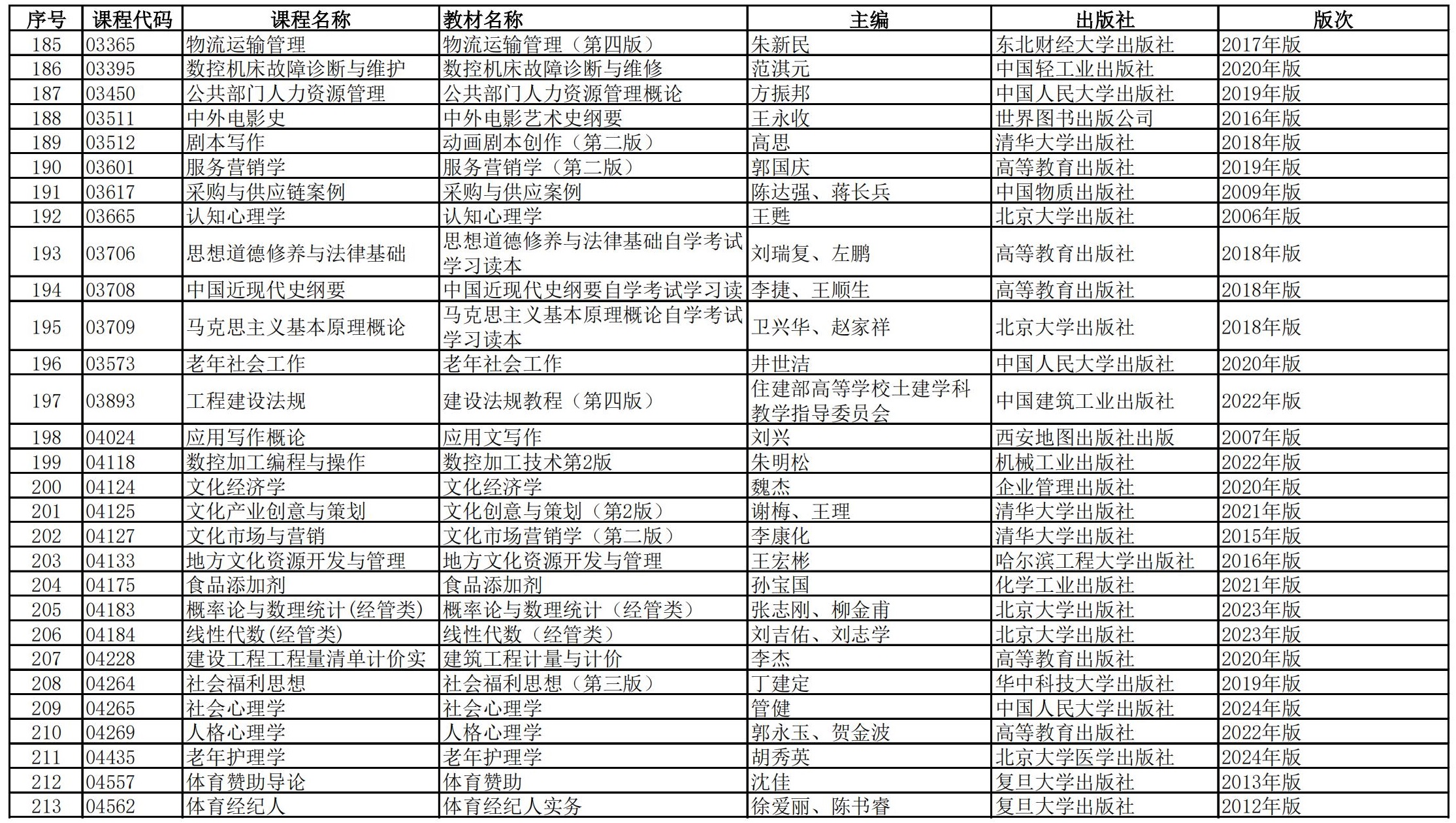 福建省高等教育自学考试理论课程参考教材目录(2023年修订版专业计划)
