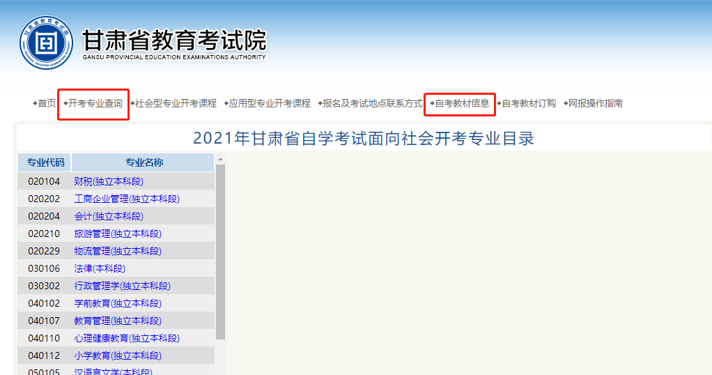 2021年甘肃自考教材版本怎么查询?