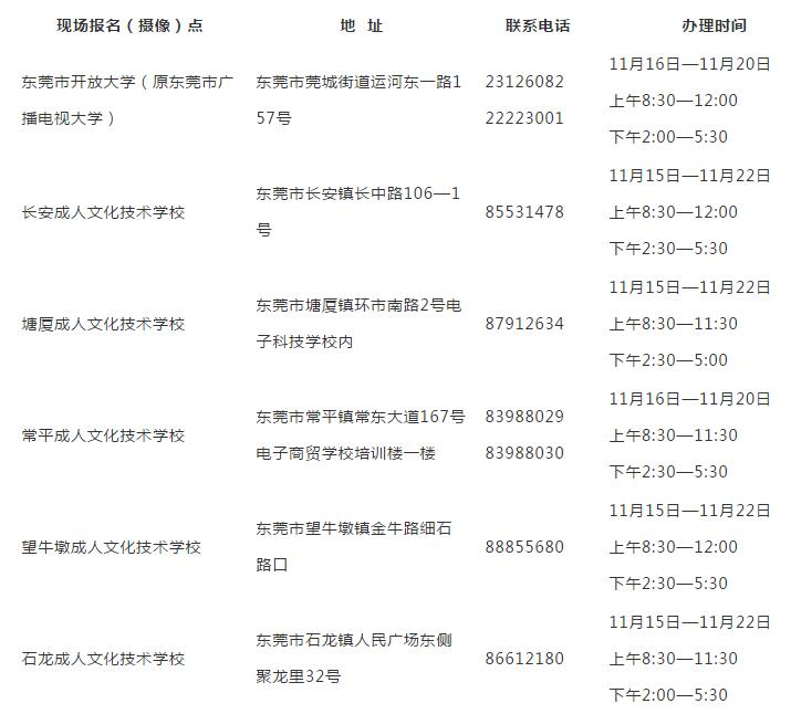 东莞市自学考试现场报名点时间安排表