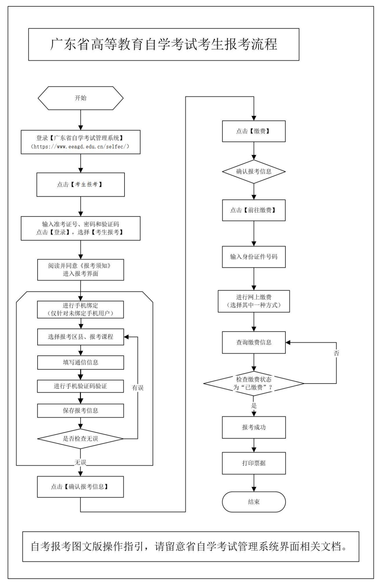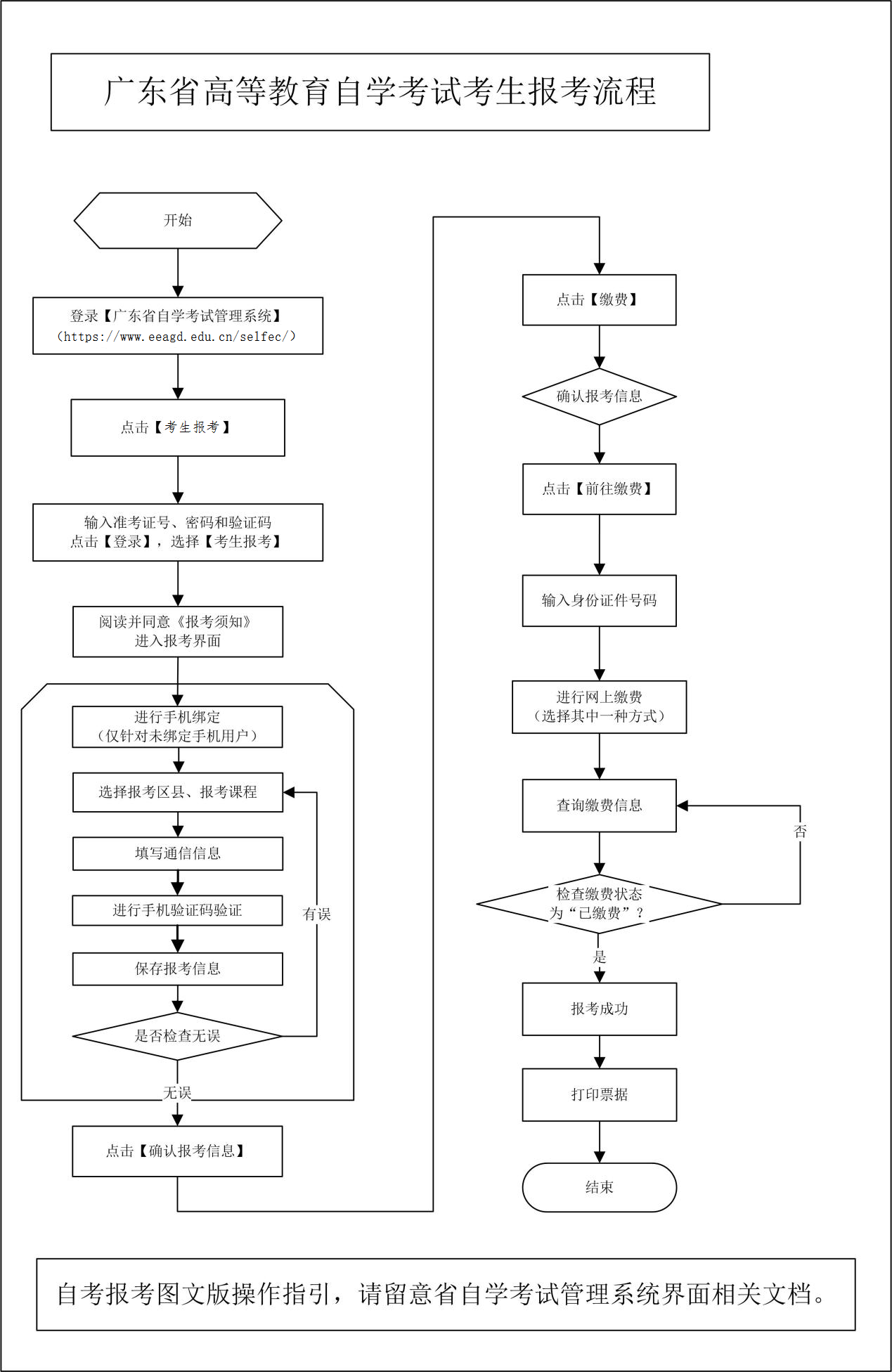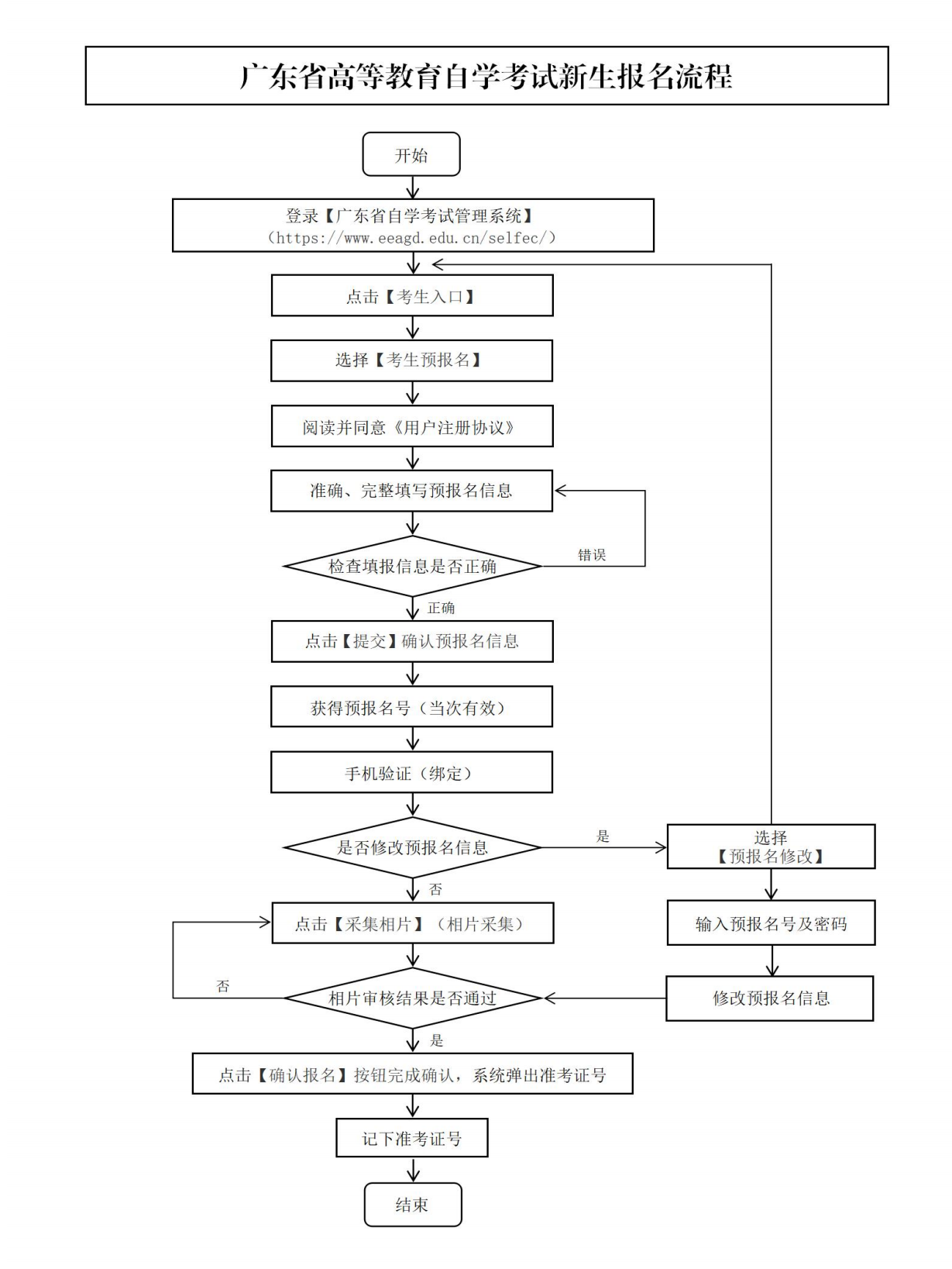 广东自考新生应先完成预报名(点击这里查看新生预报名操作指南),再进行新生报考,在籍考生可直接进行报考,具体流程如下: