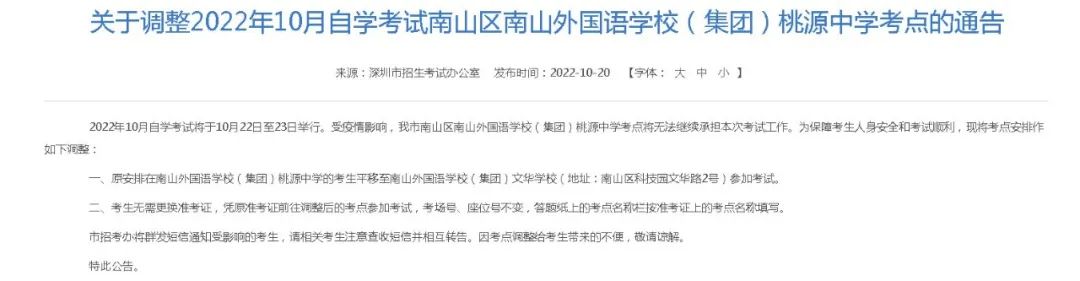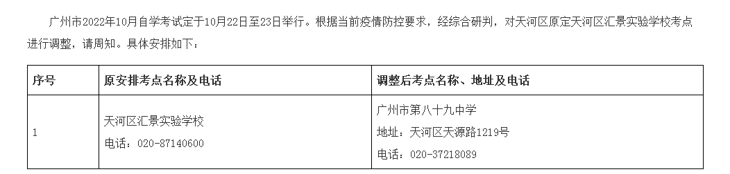 关于广东10月自考广州、深圳个别考点调整的公告汇总