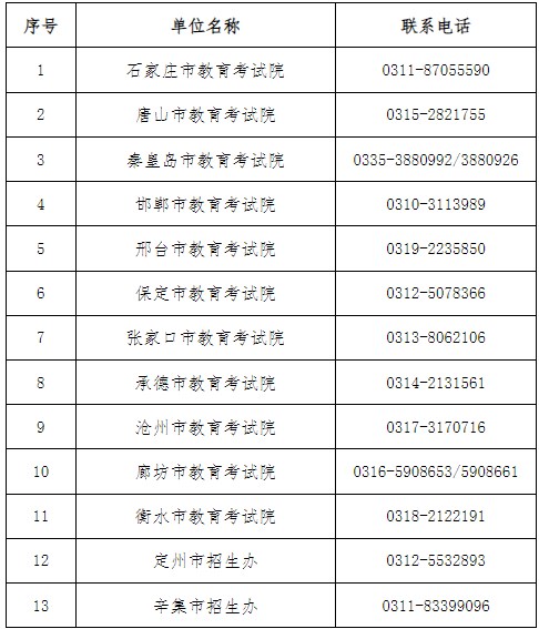 河北各市教育考试院联系方式