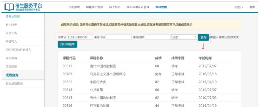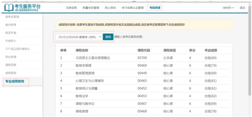 ▼湖北自考已报考专业成绩查询