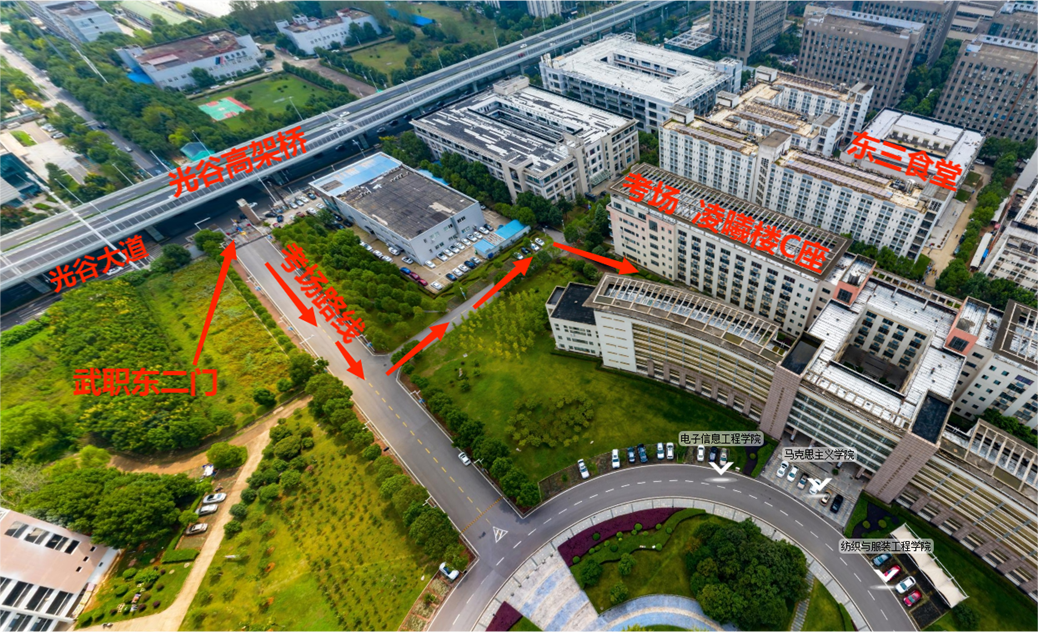 提示:学校因建筑施工,考生通道设在光谷大道武汉职院东二门,请考生从光谷大道武汉职院东二门进场。
