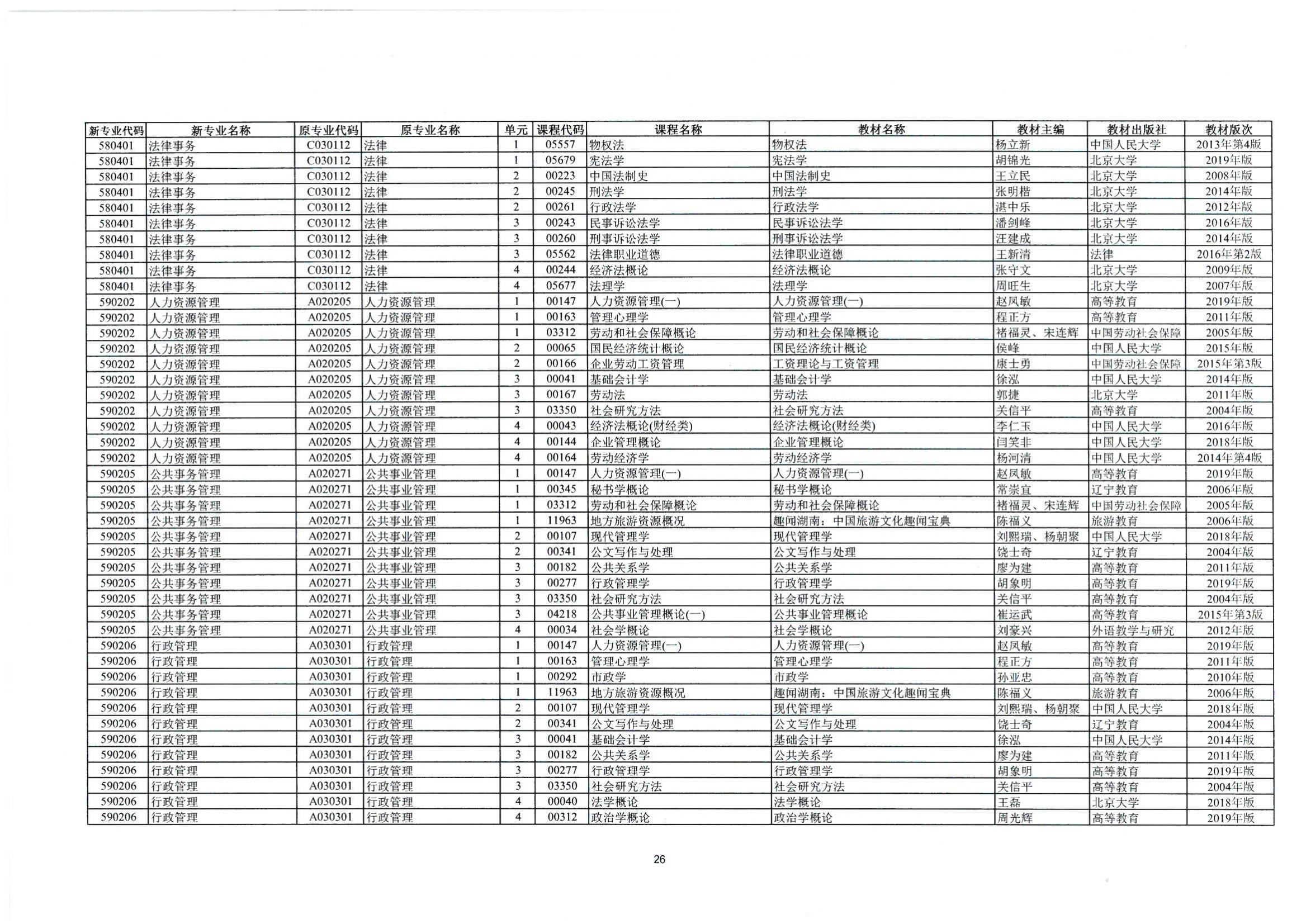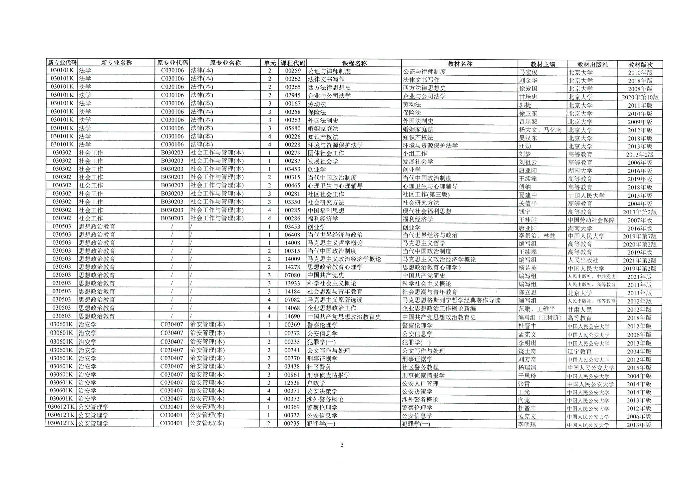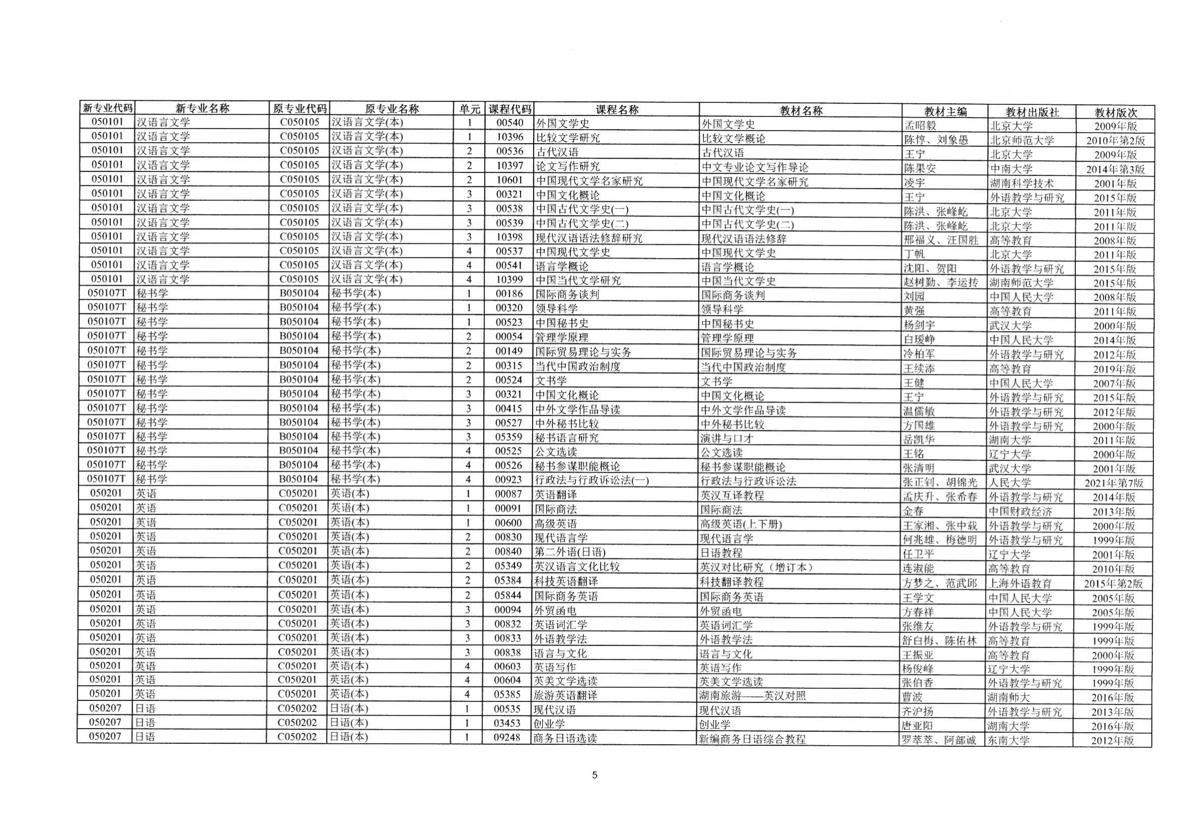 三、上述考试课程安排及教材目录将在湖南省高等教育自学考试自助服务系统(http://zikao.hneao.cn/net)中发布。目录发布后如仍有因教材出版社断供造成个别课程教材发生变更的,我院将在自助服务系统中另行发布变更通知。各有关单位要严格按照考试课程安排及指定教材版本组织教学,严格按照目录指定的教材名称、作者、出版社以及版次向考生供应教材,不得使用其他版本的教材及盗版教材。教材订购事宜可联系高等教育出版社等授权的北京培深文化有限公司长沙分公司,电话0731-82233191,地址:长沙市芙蓉区文艺路街道人民中路65号东二楼二层东侧(湖南省建筑设计院内),也可通过其他渠道订购。