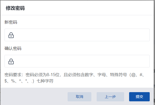 输入新密码、确认密码,点击“提交”按钮,弹出如下提示窗口。