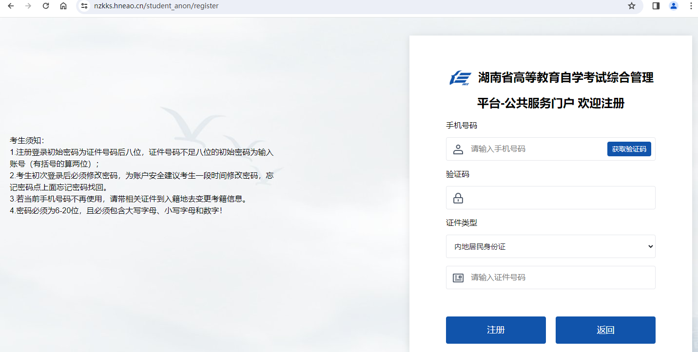 入籍审核通过并产生准考证号(全省全部审核完成后统一按规则产生),考生方可登录“湖南自考服务平台”选择专业课程进行报考。