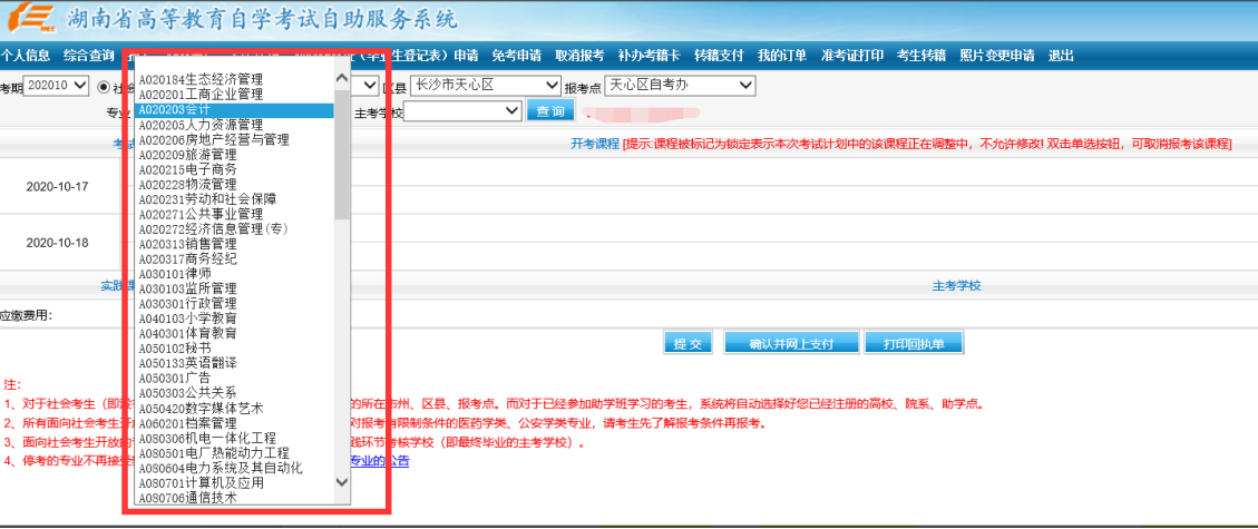 湖南省高等教育自学考试网上报考流程说明