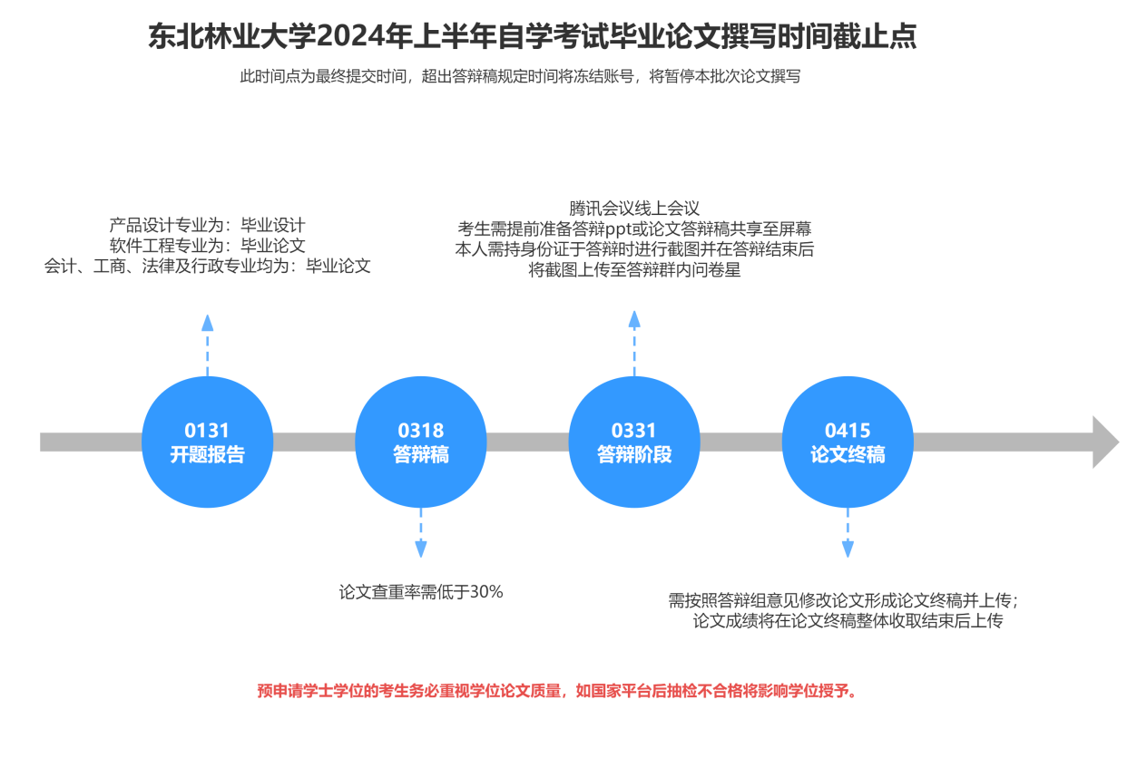 以下为东北林业大学2024年上半年自学考试毕业论文撰写时间截止点