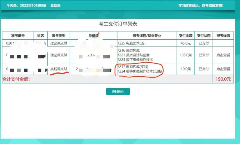 1.考生登录辽宁自学考试网上服务平台,在报考支付查询中查看自己报考的实践课程考试科目,截图保存,例如