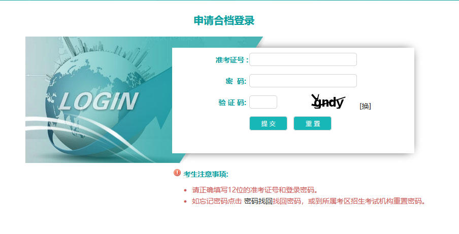 2. 阅读完考生必读后点击“确认”按钮进入登录页面。