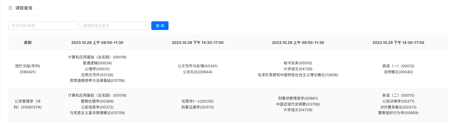 考试专业查询
