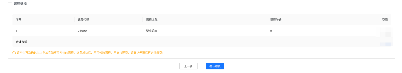 首先核对报考科目信息,核对无误后点击“确认缴费”按钮,