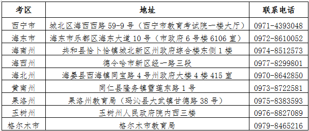 4.在西宁、海东考区同时参加4天考试的考生,10月22日至23日报考考区须与上半年报考考区一致。若没有按规定选报考区造成不能参考的,责任由考生自负。