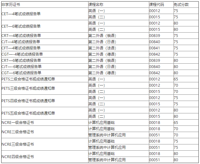 四川哪些课程可以免考?