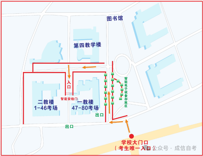 详细地址:成都市西南航空港经济开发区学府路一段24号(导航地图显示南门为考生进入考点唯一入口)