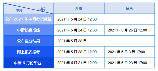 考生在报名报考同时可上网查询2021年4月考试成绩,并办理转并档申请及免考申请等事宜。