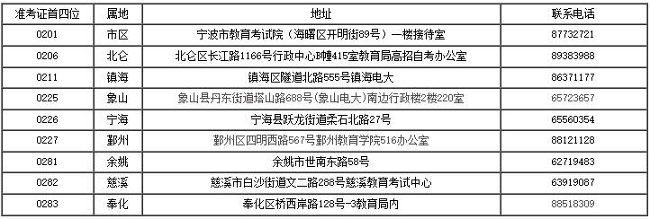 2.领取地点:宁波市教育考试院(海曙区开明街89号)一楼接待室(各区县市考生请咨询当地考试中心、自考办)